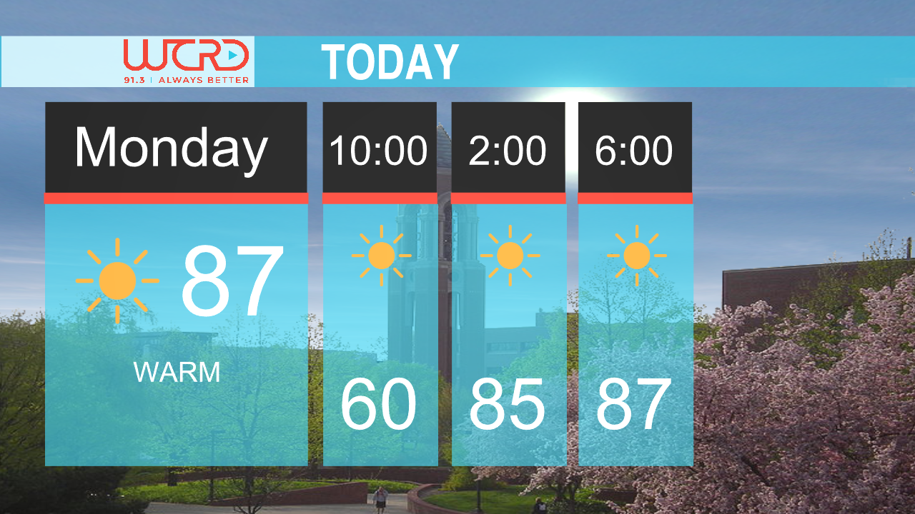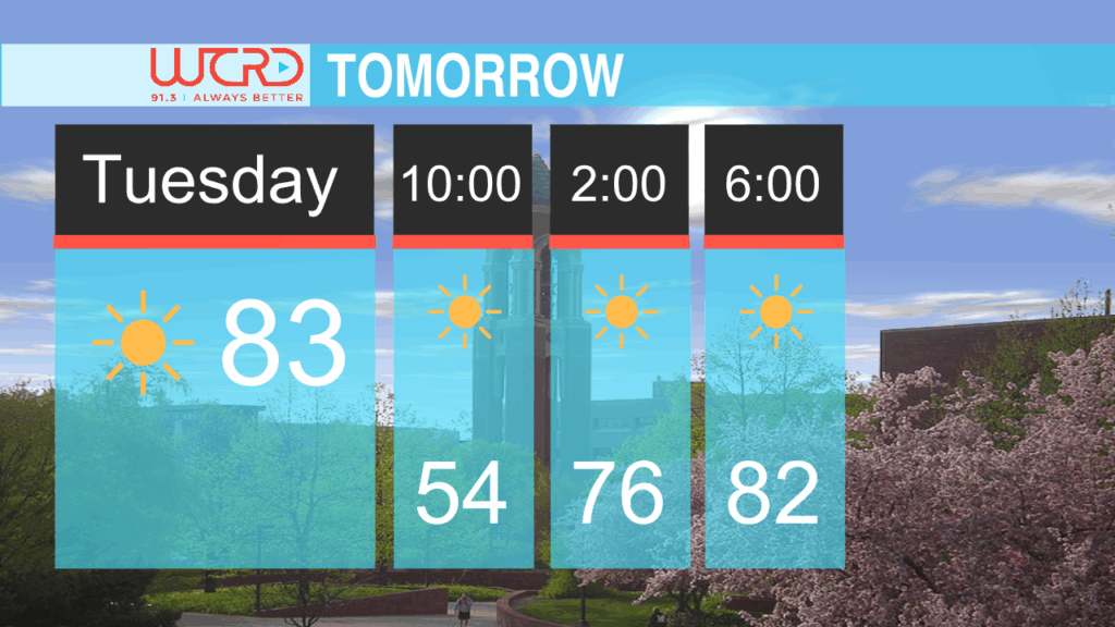 Tuesday will be warmest day of the rest of the work week, as temperatures cool back down into the lower 80s and upper 70s throughout the week. Northerly winds will bring cooler weather by Wednesday, with a high temperature closer to average. Scattered clouds will move in by Thursday and Friday, making for a bit of shade from that summer-like sun. Rain chances will be near-zero throughout the work week, with temperatures back into the low 80s by the weekend.