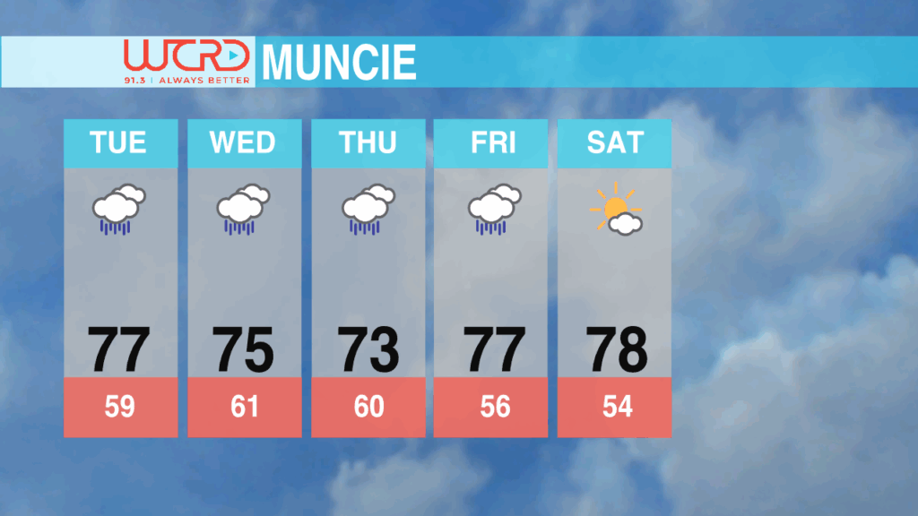 This rainy and unsettled pattern will continue throughout the week, as a cut-off low will linger around the Midwest, bringing daily rain chances and an afternoon chance at thunderstorms. Temperatures will remain in the mid to upper 70s throughout your work week, with the rain finally tapering off into the weekend, with a return to drier weather by Saturday.