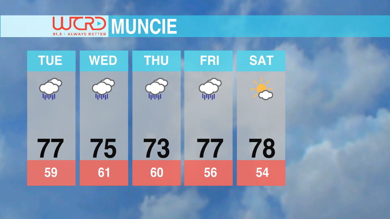 This rainy and unsettled pattern will continue throughout the week, as a cut-off low will linger around the Midwest, bringing daily rain chances and an afternoon chance at thunderstorms. Temperatures will remain in the mid to upper 70s throughout your work week, with the rain finally tapering off into the weekend, with a return to drier weather by Saturday.