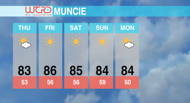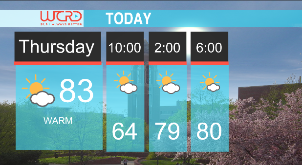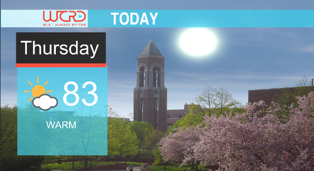 Partly cloudy to then mostly sunny skies will be the conditions for this Thursday. With the skies staying mostly clear and a beating down sun temperatures are expected rapidly increase from the morning to the afternoon and will get into the mid 80s at the highest.