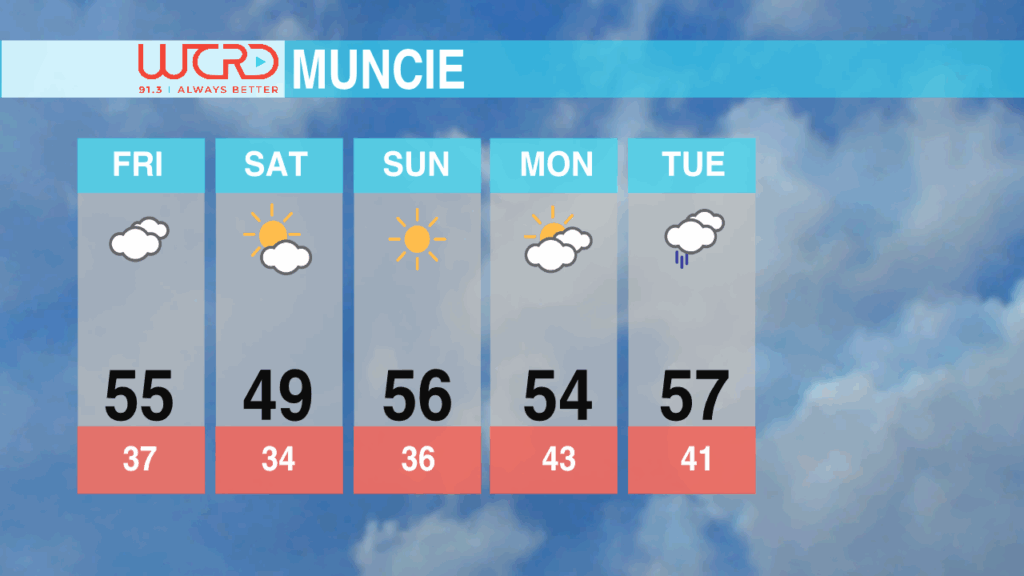 Friday night will cool down to around 37 degrees. Saturday we will see the clouds start to clear up a bit, with mostly sunny skies and a light breeze. To continue our ongoing trend of mild fall temperatures, we’ll have a high of around 49 degrees. Sunday will be even brighter, with mostly sunny skies and a slightly warmer high of 56 degrees. Our bright skies won’t follow us into the week though, as Monday once again will have mostly cloudy skies and a 20% chance of rain during the day, and a 60% chance of showers overnight. On Tuesday, the rain will likely return, with a 70% chance of precipitation, and mostly cloudy skies.